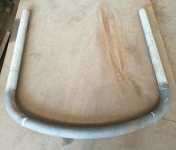 攪拌器彎管一般采用同等管徑下壁厚比較厚的管子加工,加工過(guò)程中必須保證平面的平整度和彎管的通心度。
